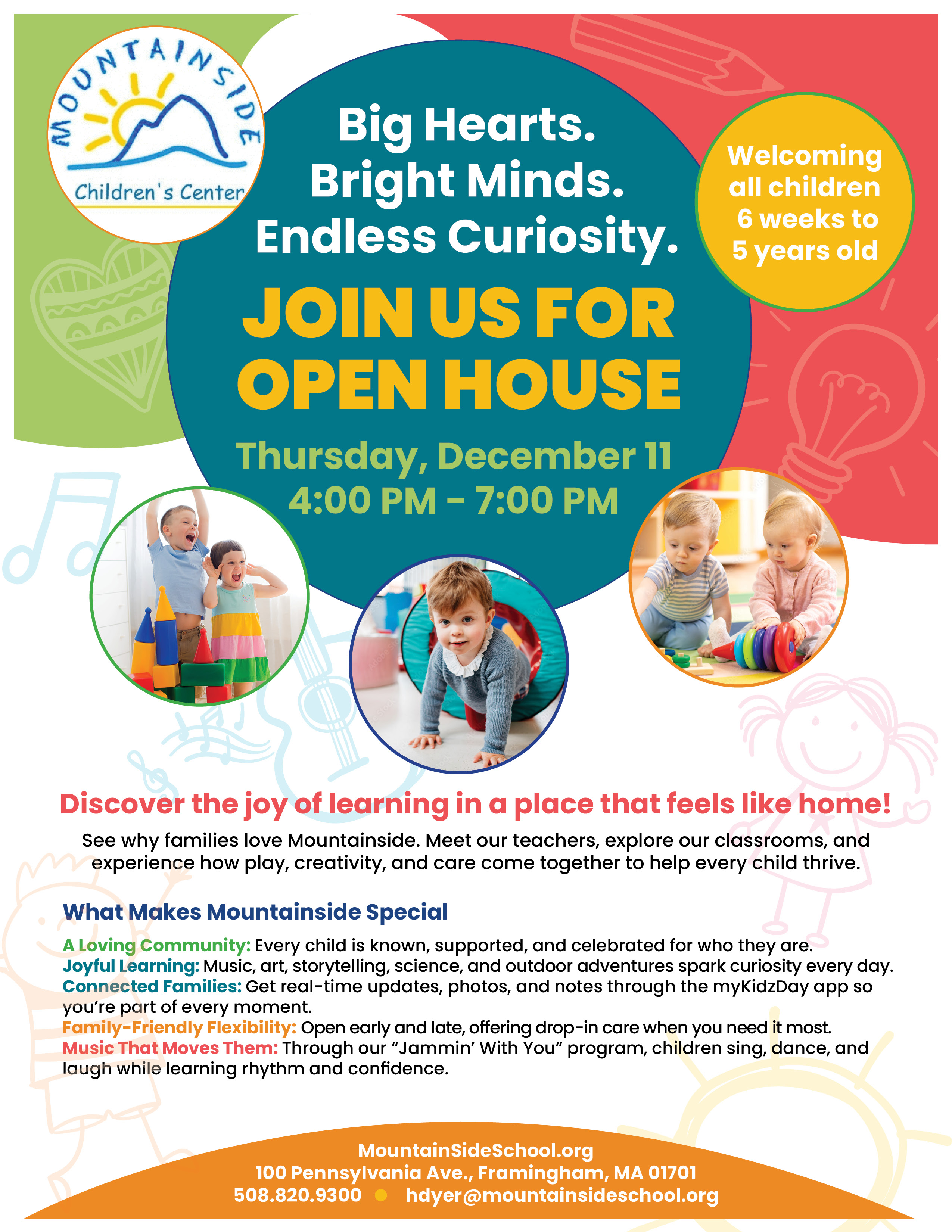 Stay informed about upcoming events, holiday closures, and special activities at Mountainside Children's Center. Join our community through special events, holiday celebrations, and family activities throughout the year.